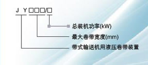 表示:大卷帶寬度為2000mm,卷帶總功率為22kW,其型號標記為JY2000/22型。