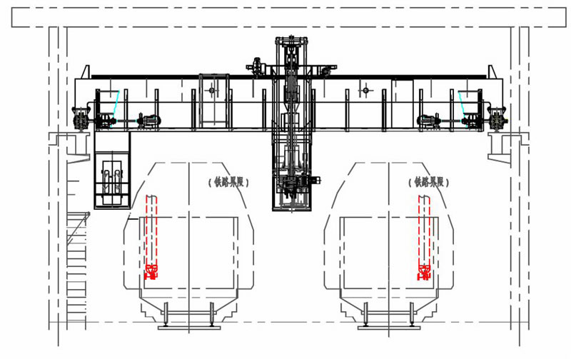 該圖片展示了門式螺旋鉆采制樣系統(tǒng),該系統(tǒng)由門式大車、移動(dòng)小車、螺旋鉆采樣機(jī)及制樣設(shè)備組成。系統(tǒng)特點(diǎn)是門式大車可以沿著火車軌道方向行走,移動(dòng)小車安裝在門式大車上垂直于火車軌道方向運(yùn)動(dòng),螺旋鉆上下運(yùn)動(dòng),這樣可以實(shí)現(xiàn)對(duì)任一個(gè)車廂的任一點(diǎn)采樣。余料就地返回采樣點(diǎn)。