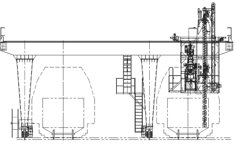 螺旋鉆采樣機(jī)及上下驅(qū)動(dòng)裝置、所有制樣設(shè)備、電氣控制柜及操作室均與移動(dòng)小車連成一體隨小車移動(dòng)。