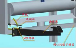 ?、侔鸦钊麠U卡子如圖所示安裝在下調(diào)心托輥橫梁上,先不擰緊螺母,待油缸安裝上調(diào)整到合適位置時(shí)再擰緊螺母。