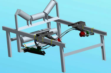 液壓糾偏裝置作用在上、下調(diào)心托輥上,皮帶跑偏時(shí)主動(dòng)調(diào)整糾偏拖輥角度校正皮帶,不但可省掉立輥保護(hù)皮帶邊緣不受立輥摩擦損傷,而且快速校正皮帶。 自動(dòng)檢測(cè)跑偏并予以校正,使皮帶始終處于合理狀態(tài)運(yùn)行,對(duì)皮帶機(jī)安裝不當(dāng)、運(yùn)轉(zhuǎn)失靈、物料沖擊、負(fù)荷變化、皮帶斷面間伸長(zhǎng)率不均勻造成皮帶跑偏有很好的調(diào)整作用。